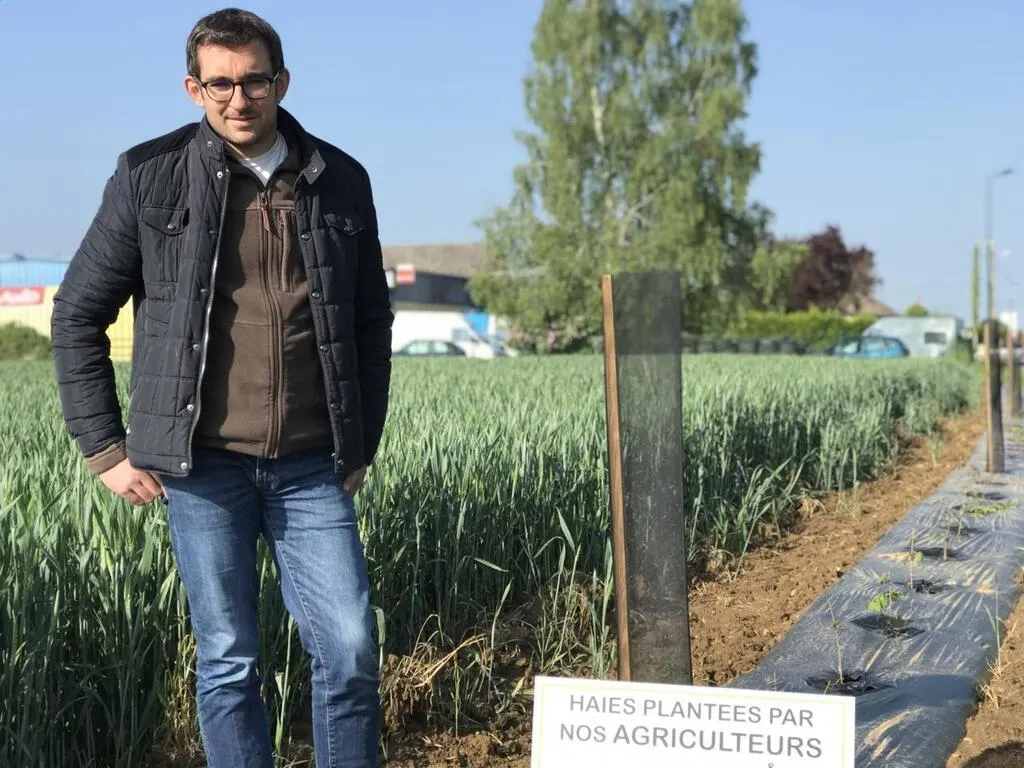 Luc Bertrand, adjoint d’exploitation forestière chez BNE, sur l’une des parcelles à Écouché accueillant une partie des 11 km de haies bocagères, plantées dans le pays d’Argentan. © Ouest-France