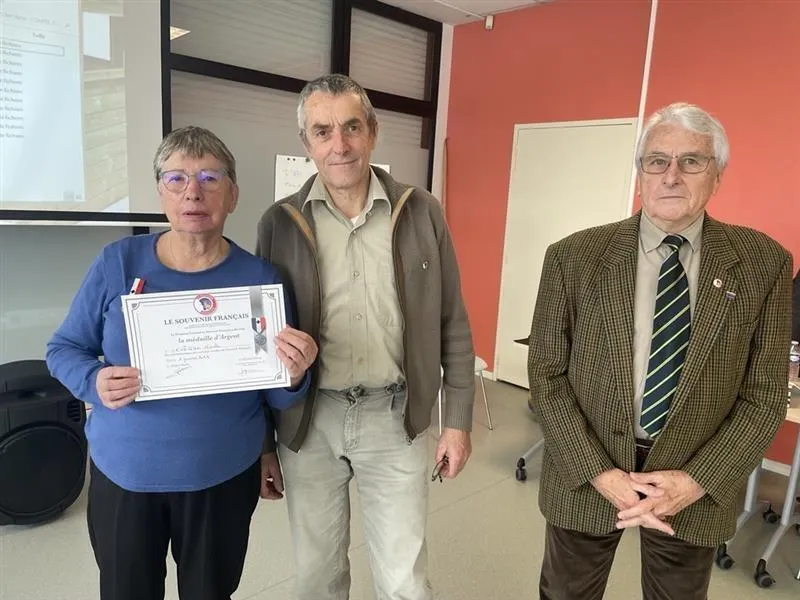 Nicole Leveque, trésorière récemment récompensée pour ses dix années dans l’association ; Joseph Vivier, responsable départemental et Jean-Louis Thébeline, son adjoint. © Ouest-France