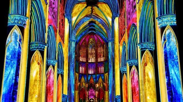Ses caractéristiques originelles perdurent : le spectacle se déroule dans la cathédrale, il narre une histoire (différente tous les trois ans), les images sont projetées sur les murs ou en transparence et la musique transcende l’ensemble.« À chaque saison, une cinquantaine de bénévoles se mobilise pour que cette émotion renaisse », souligne Christian Lecoq, président depuis trente-neuf ans de l’association Art et cathédrale qui porte le spectacle. Il y a notamment l’équipe constituée pour la création des spectacles : Nicole et Marc-Antoine Orellana pour les images, Anne-Sophie Boisgallais pour le texte ou encore Hervé Deslandes pour l’informatique.