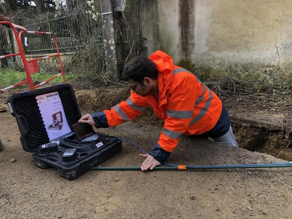 Grégoire Dectot, ingénieur risques naturels au Bureau de recherches géologiques et minières de Normandie, sur le point d’inspecter la cavité avec une caméra. © Ouest-France