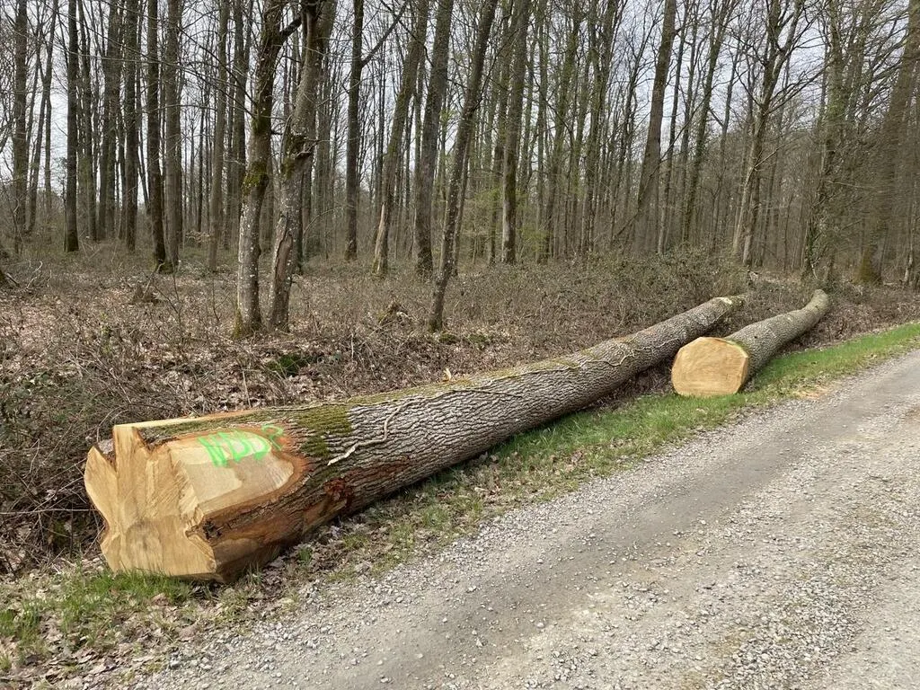 Ces deux chênes âgés de 120 ans ont été abattus en mars. © Val-au-Perche
