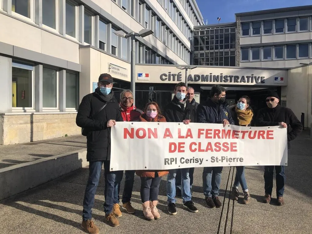 Depuis 8 h 30 ce jeudi matin, ils sont huit à tenir leur banderole au message clair. Hervé Borderie et Christian Duriez, respectivement maires de Cerisy et Saint-Pierre, sont là, aux côtés de six parents et anciens parents d’élèves. « Nous sommes là pour montrer notre détermination, notre refus que l’on touche à la qualité de vie dans nos communes », explique Christian Duriez.
