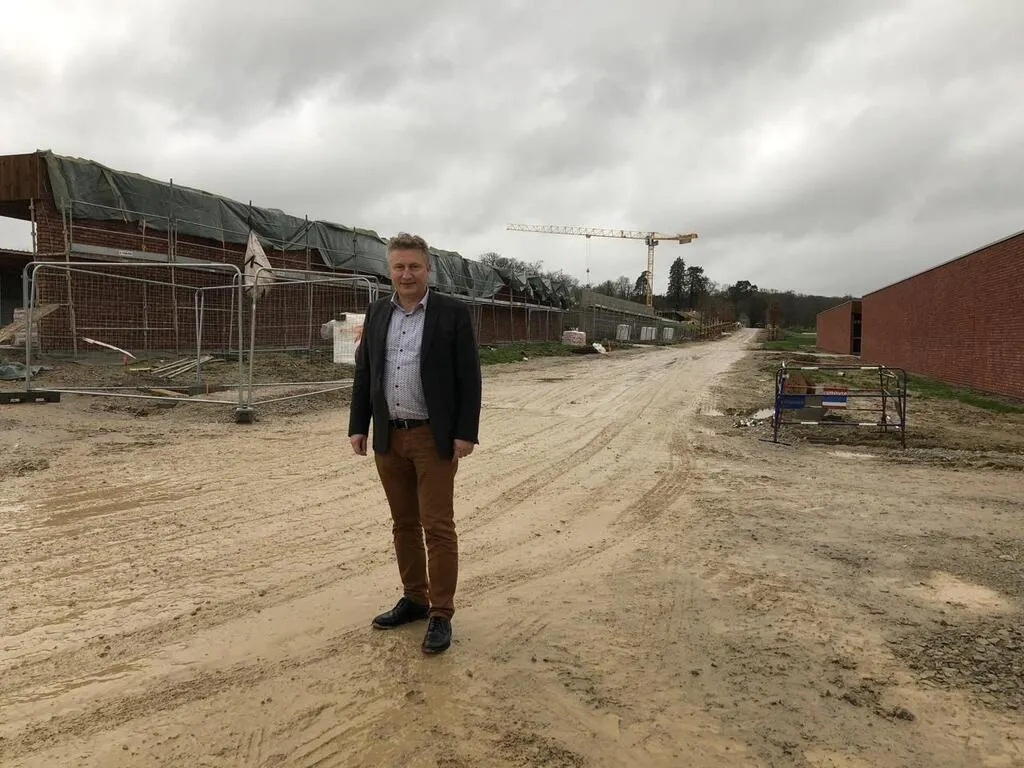 Sébastien Leroux devant l’allée des Grands-Champs qui reliera les parkings, les boxes, et les carrières. © Ouest-France