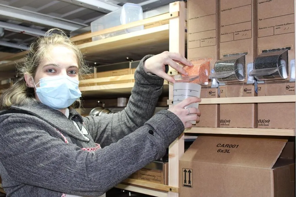 Murielle Quernet a commencé son activité le samedi 9 janvier. Pour l’heure, elle rode son épicerie ambulante de produits en vrac et dispose de place dans son planning pour se rendre dans d’autres communes. © Ouest-France