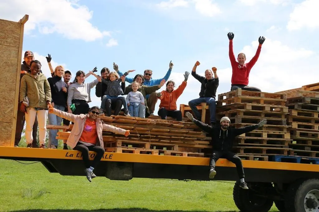 Une quinzaine de bénévoles du Biche festival a déménagé le matériel du lieu historique, à Cisai-Saint-Aubin, vers le nouveau site, à Rai. © OUEST-FRANCE