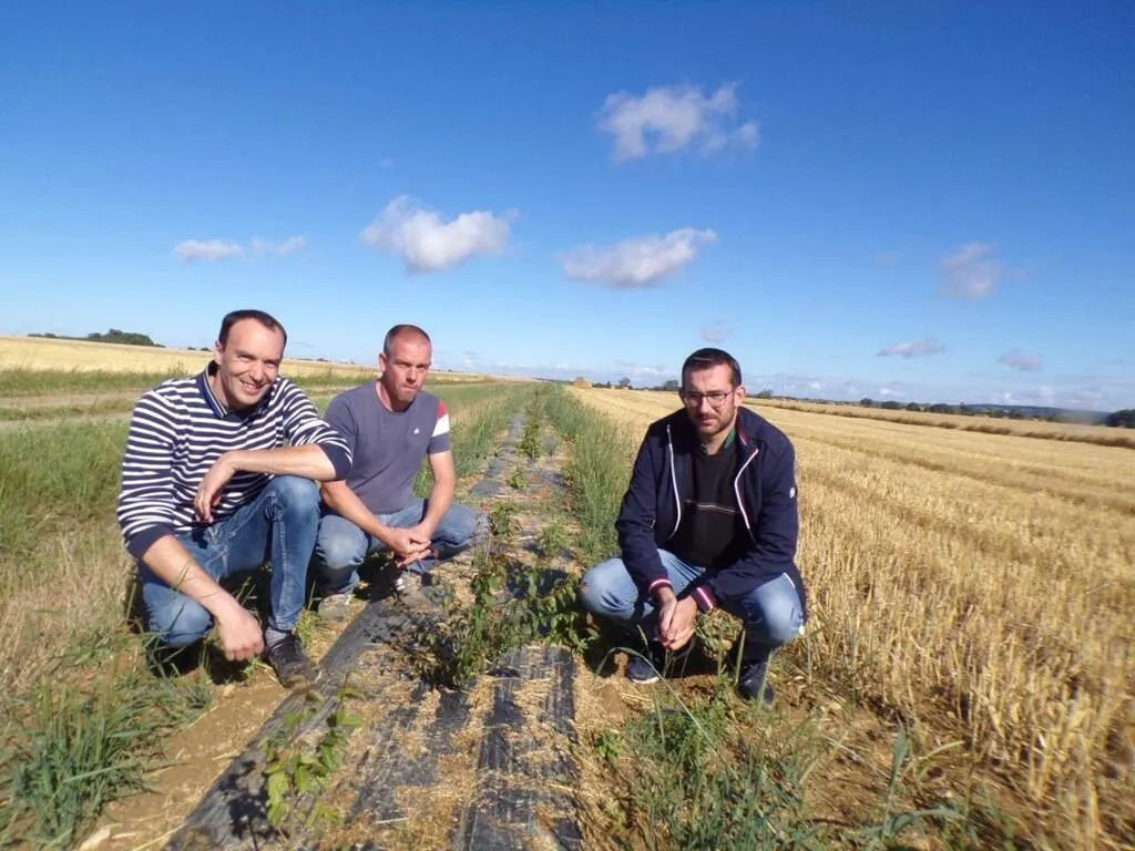 Nicolas Cottereau, Anthony Guibé et Luc Bertrand devant un linéaire de haies. © Ouest-France