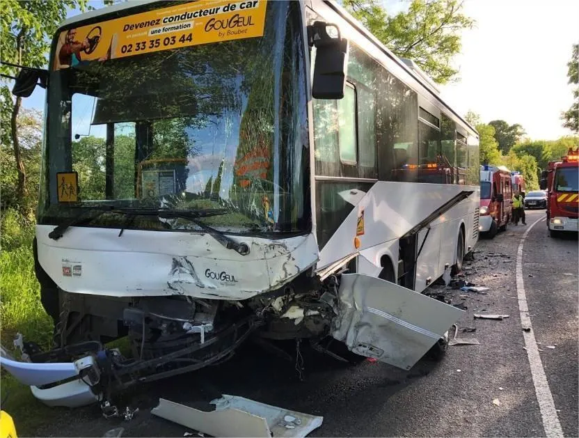 Un accident entre un car scolaire et une voiture s’est produit le jeudi 12 mai 2022, près d’Argentan. © Archives Ouest-France