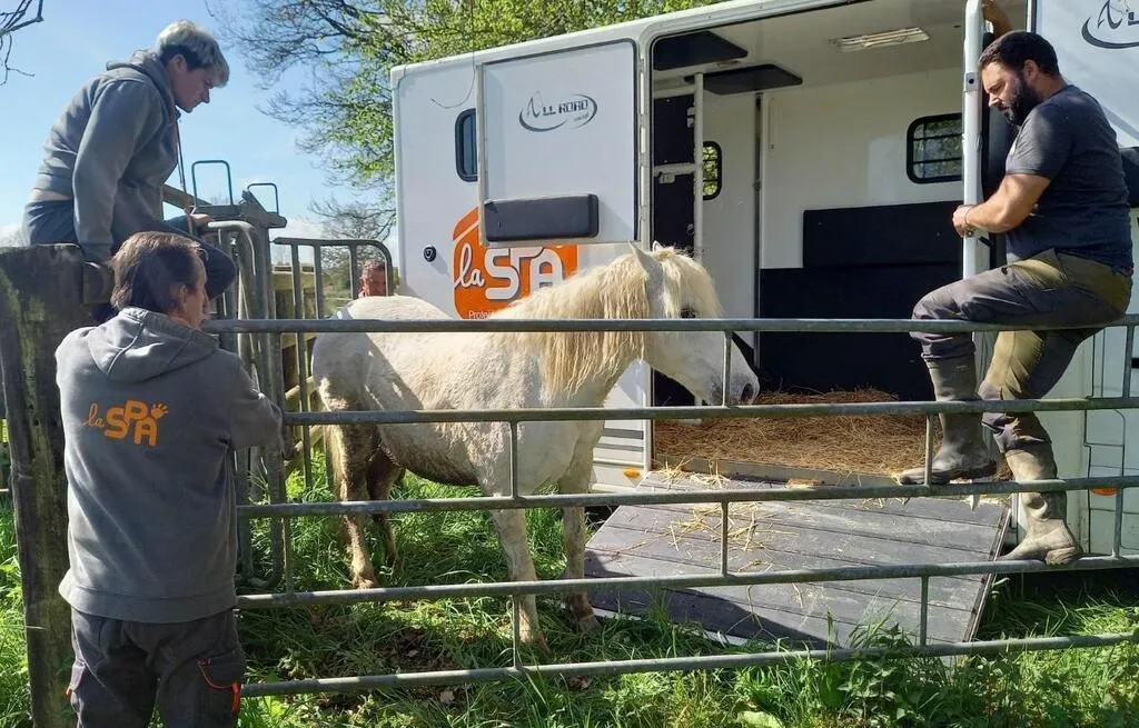 Trois chevaux du conseil départemental ont quitté le Marais pour le Grand refuge SPA de Pervenchères. © JM Gaudin