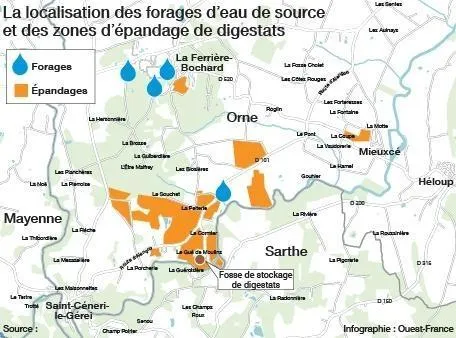 Le groupe Alma prévoit de produire à nouveau de l’eau de source sur le site de Roxane de La Ferrière-Bochard (Orne). Un projet menacé par un plan de stockage et d’épandage de résidus d’une unité de méthanisation.