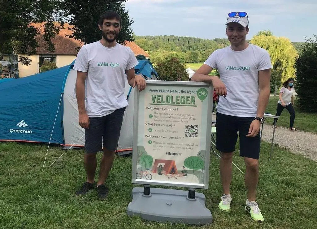 Pendant l’été 2021, deux étudiants âgés de 22 ans, originaires de Nogent-le-Rotrou (Eure-et-Loir), ont lancé VéloLéger : une entreprise qui loue du matériel de camping sur une portion de la Véloscénie.