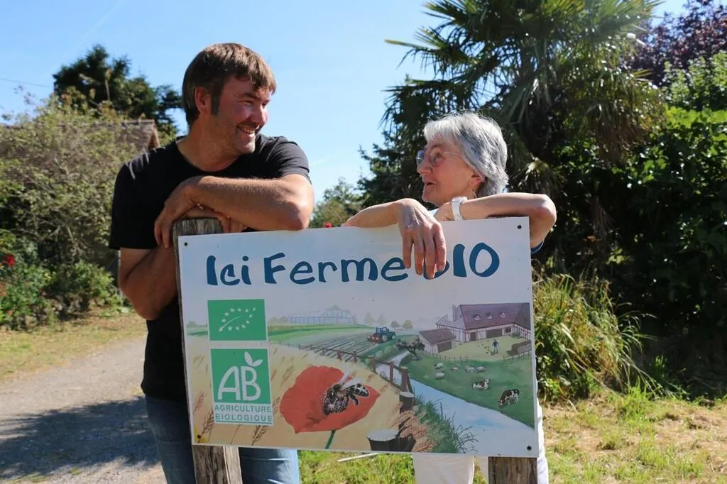 Cédric Babin, producteur de volailles bio, et Brigitte Rozoy, administratrice de la fédération Terre de liens. OUEST-FRANCE