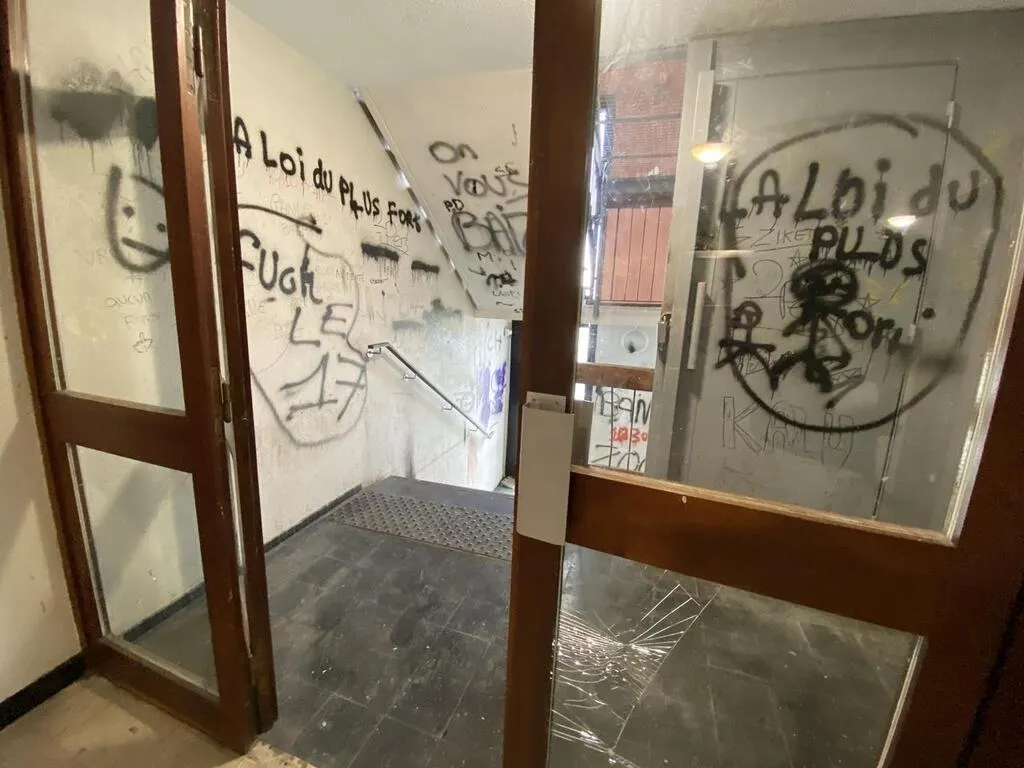 Les murs des espaces communs de la tour Péguy sont recouverts de tags. Ouest-France