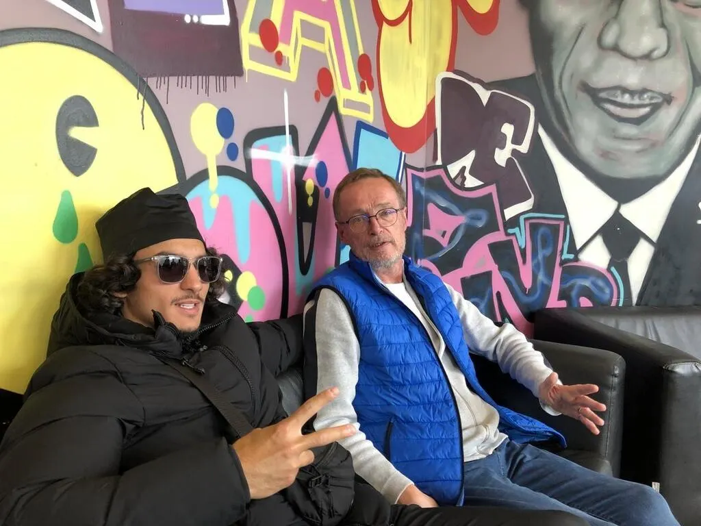 Madani Abkram, qui fréquente la médiathèque avec ses amis, pose avec le responsable des lieux, Philippe Bacala. Ouest-France