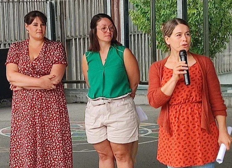 Camille Coueffe, Maud Geslain, les nouvelles enseignantes et Cindy Krasna, la directrice de l’école des Deux-Chênes. © Ouest-France