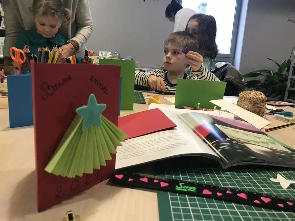 Lors de chaque vacances, la médiathèque de La Ferté-Macé, dans l’Orne, propose un atelier La Fabrique autour de créations pour les petits à partir de 4 ans. Ce jeudi 4 janvier 2024, plusieurs enfants ont confectionné des cartes de vœux.