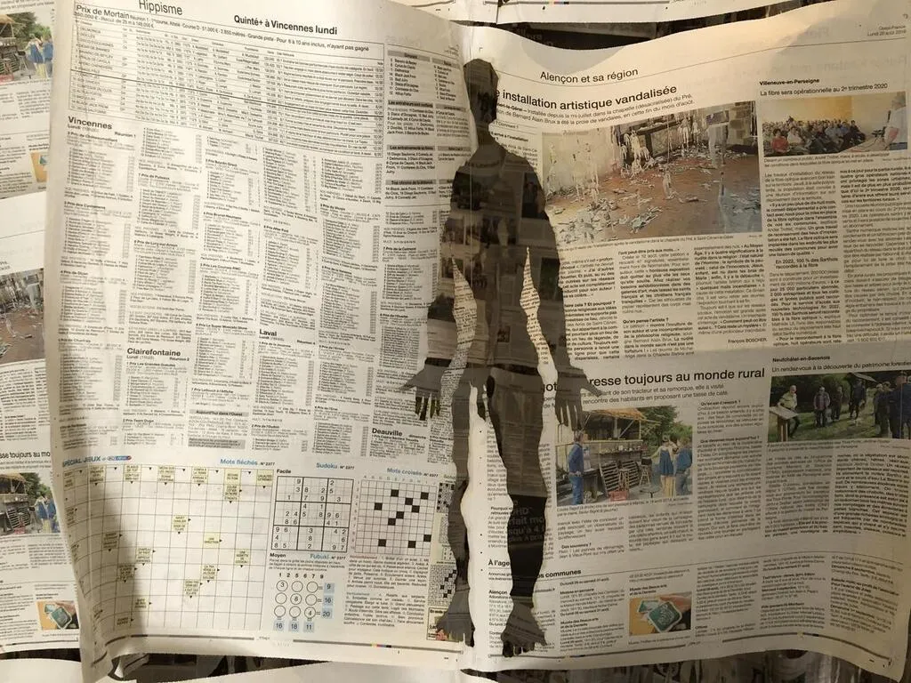 Ce samedi 25 juillet 2020, les visiteurs pourront découvrir en l’église Saint-Sylvestre de Plouzélambre (Côtes-d’Armor) la dernière réalisation de l’artiste de Pleumeur-Boudou Bernard-Alain Brux. Il s’agit d’un labyrinthe réalisé avec des pages du journal Ouest-France, composé notamment de figurines accrochées entre elles.