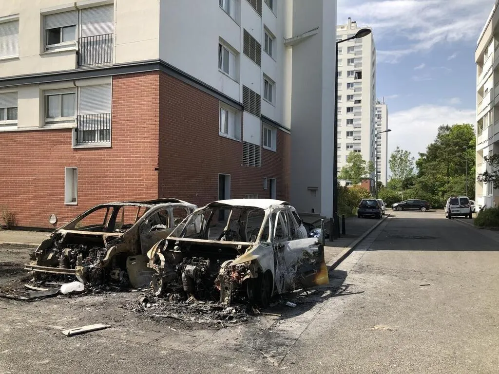 Deux voitures brûlées rue Jacques Feyder, à Nantes (Loire-Atlantique), le 25 juin 2025. © Ouest-France