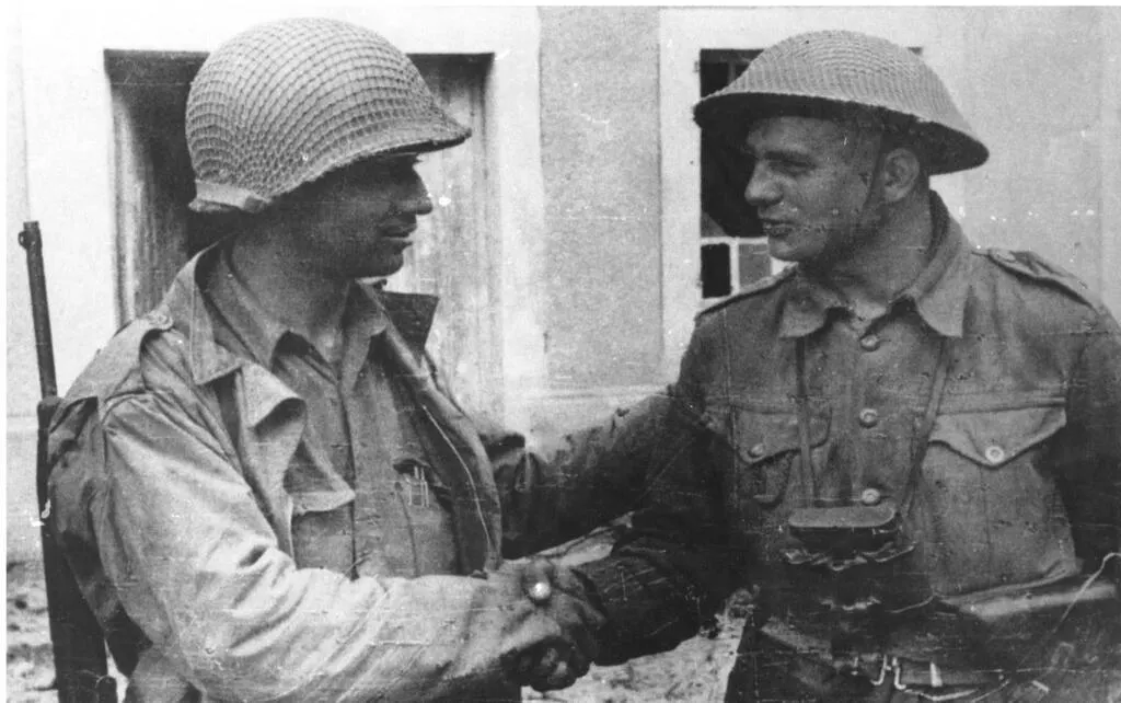 Soldats américain et polonais, à Chambois, en août 1944. © NAC (Narodowe Archiwum Cyfrowe)