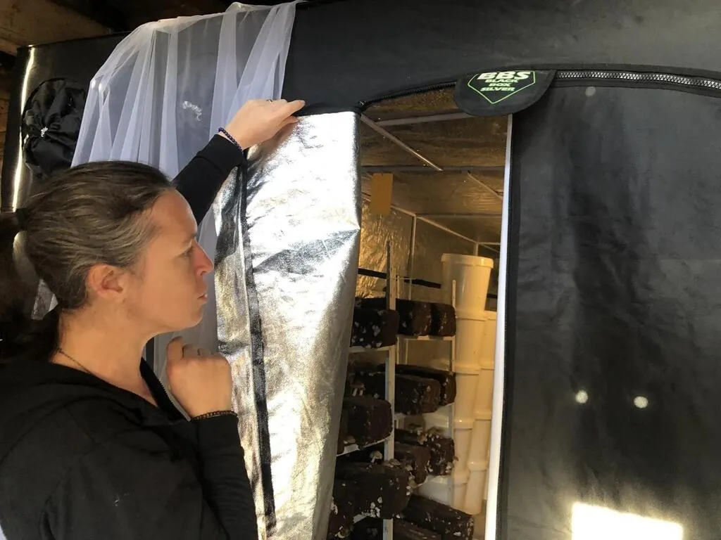 Audrey Chevreaux s’est lancée dans la culture de champignons il y a six mois. © Ouest-France