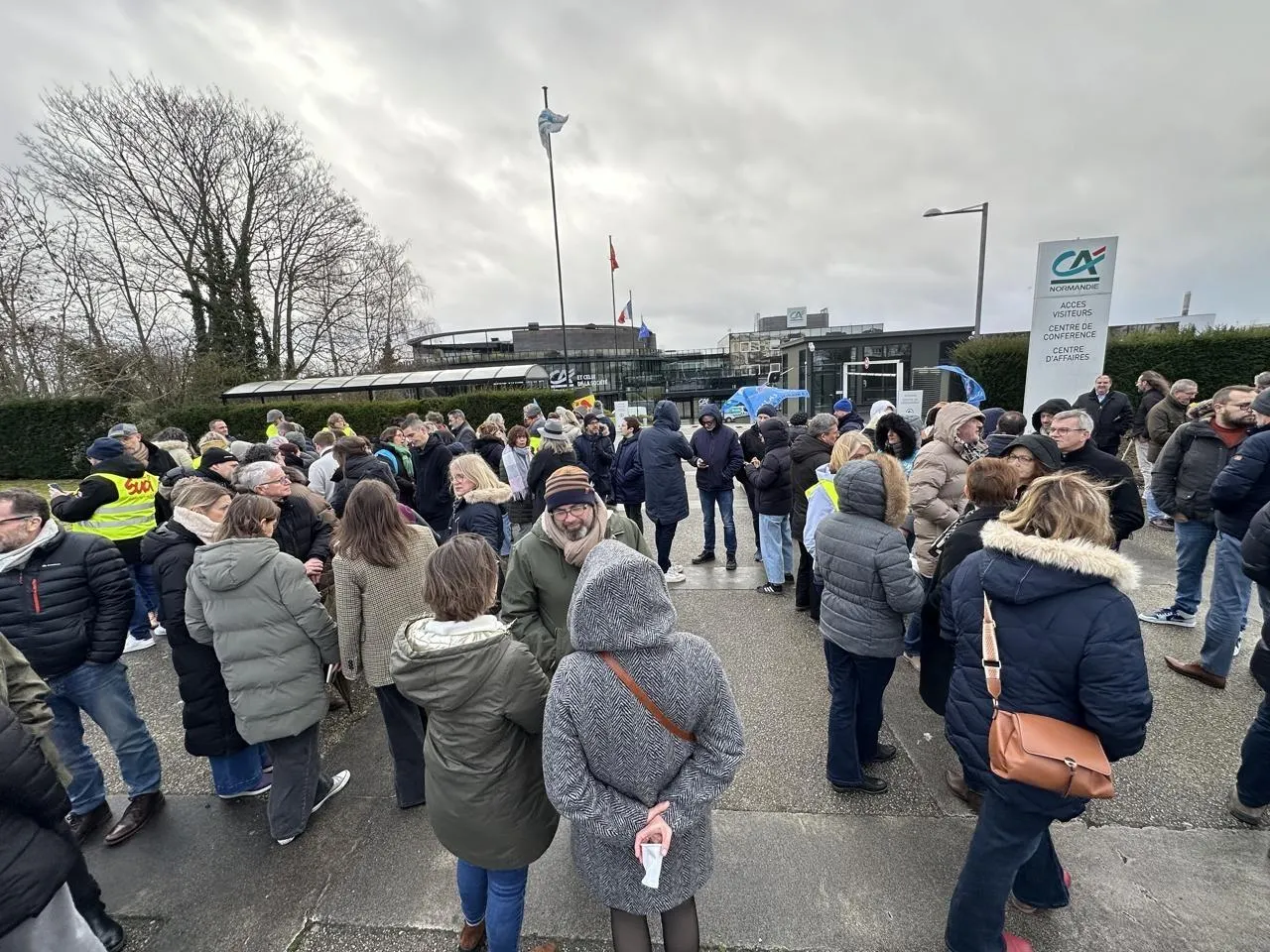 En parallèle d’un appel national à la grève au sein des agences du Crédit agricole, jeudi 22 janvier 2026, les syndicats Sud et Unsa appelaient à une mobilisation des salariés de la Caisse régionale du Crédit agricole Normandie (dont le siège est situé près du Mémorial de Caen) et des agences qui y sont rattachées dans le Calvados, la Manche et l’Orne. Une centaine de personnes ont répondu à l’appel, vers 10 h.