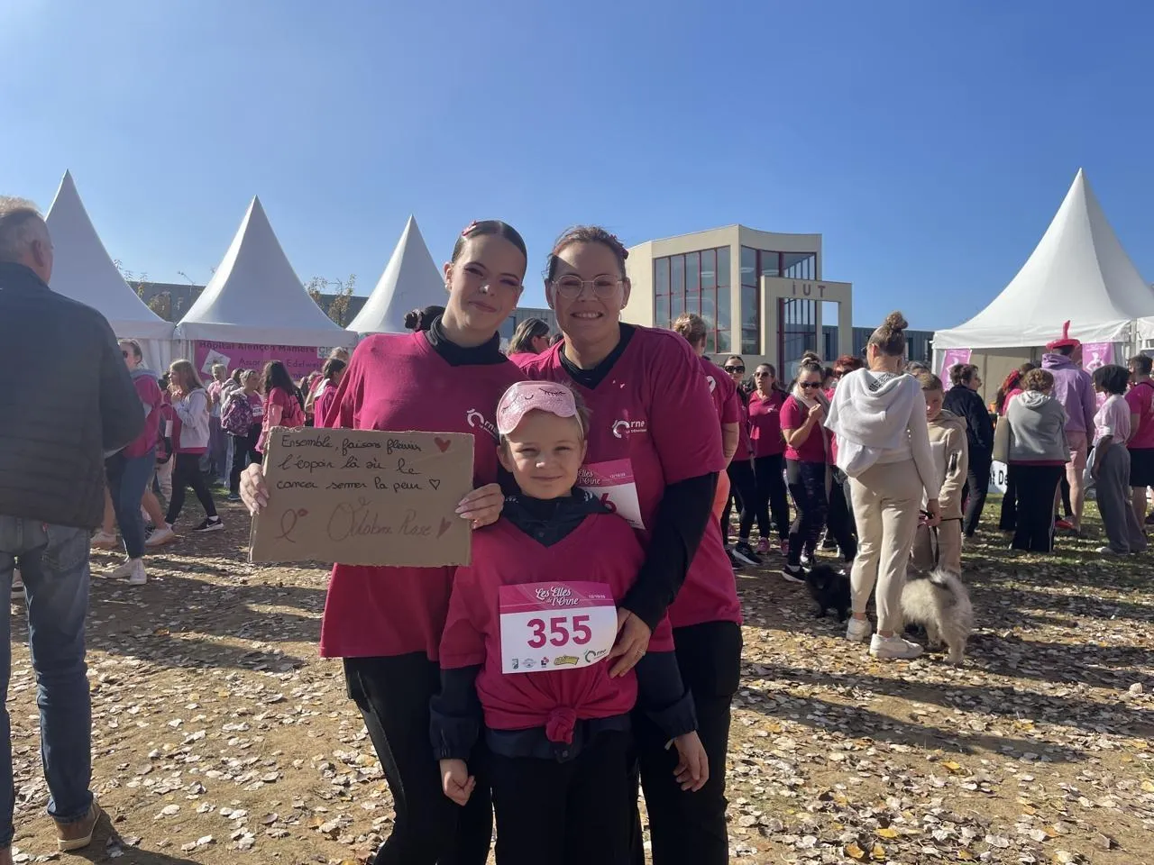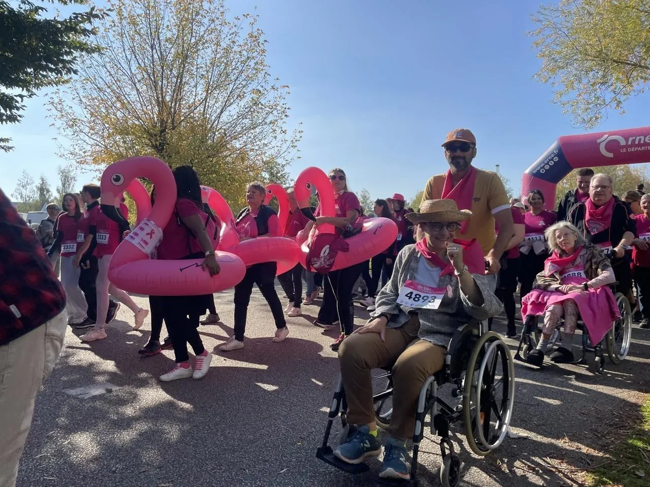 La course – majoritairement féminine – destinée à récolter des fonds pour la recherche contre le cancer du sein a animé les rues de Damigny (Orne), dimanche 12 octobre 2025. Dans le cortège des coureuses ou celui des marcheuses, outre les personnes en fauteuil roulant et les chiens tenus en laisse, il y avait de nombreux enfants qui avaient envie de défendre cette cause.