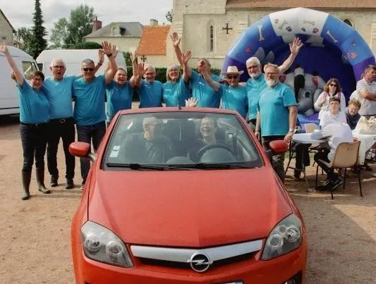 Le cabriolet remporté et une partie des bénévoles du comité des fêtes de Moulins-sur-Orne. © Comité des fêtes
