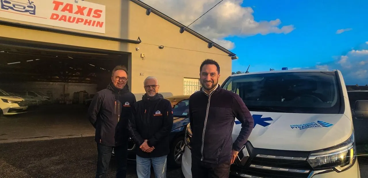De gauche à droite : Cédric Collet et Dominique Allix (Taxis Dauphin) et Anthony Agostini (Ambulances Pyramide). © Ouest-France