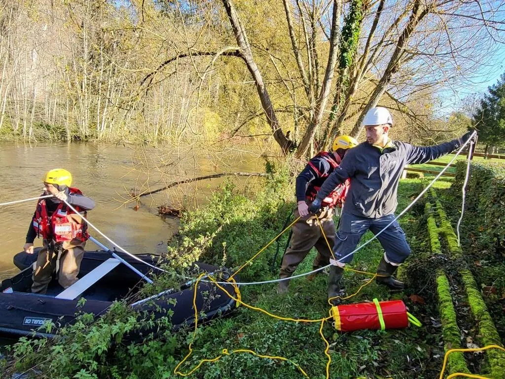Près d’Argentan, les pompiers aident Enedis à rétablir le courant en repêchant un câble électrique... |