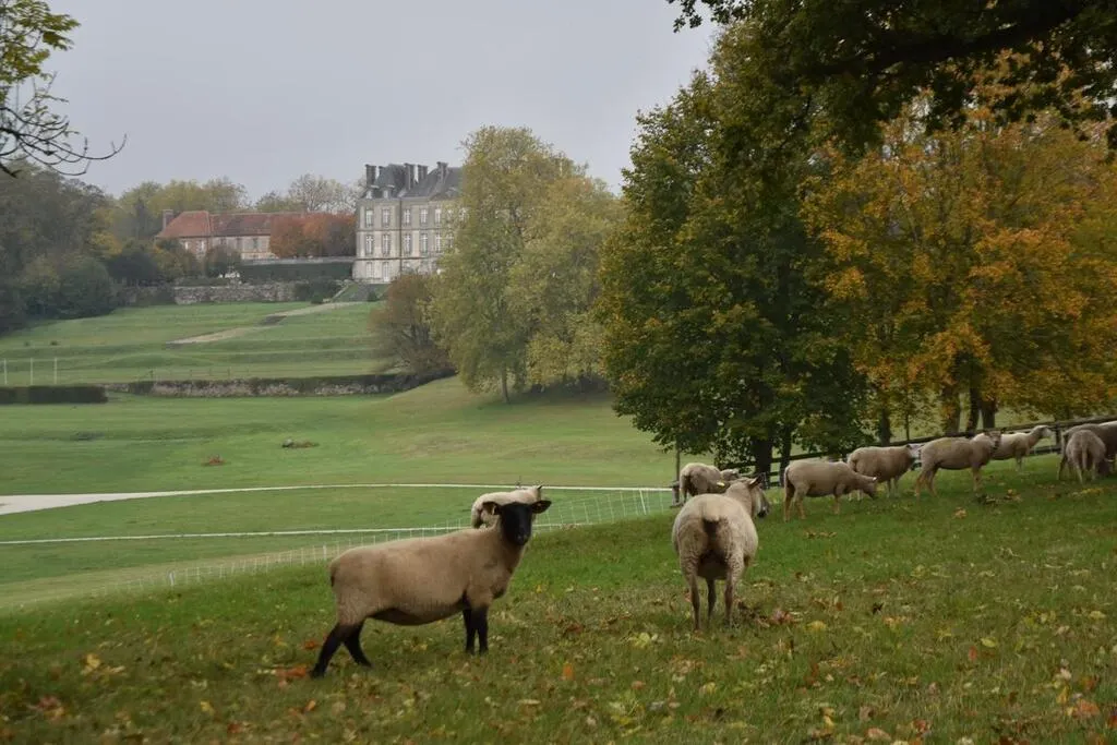 Les moutons broutent l’herbe du parc du Hautbois dans le domaine du Haras du Pin. © Ouest-France