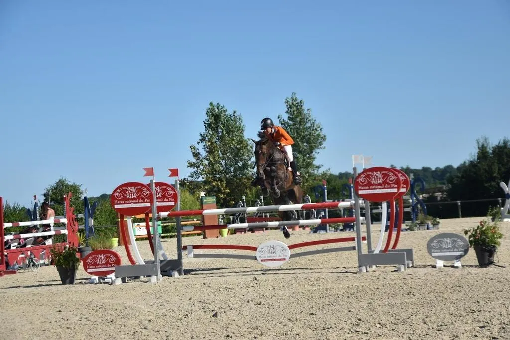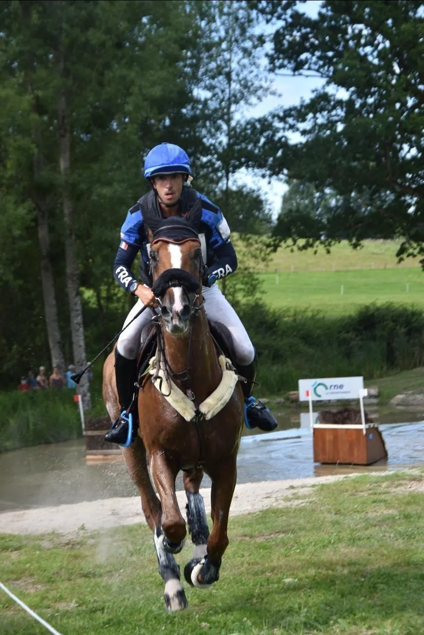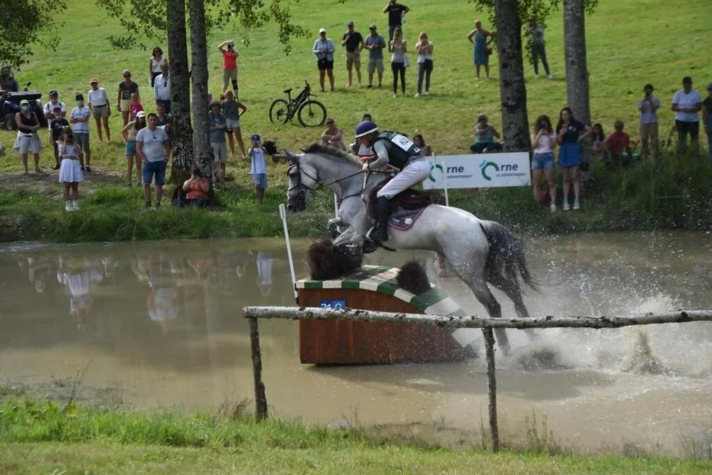 Le public s’est massé autour d’une petite étendue d’eau, dans le parc du Hautbois du Haras national du Pin (Orne). Un cavalier arrive, les spectateurs retiennent leur souffle. Le cheval saute l’obstacle placé au milieu de l’eau, atterrit dans une explosion d’eau brune et quitte le gué sous les applaudissements. « C’était parfait ! » s’exclame un petit garçon accoudé à une barrière.