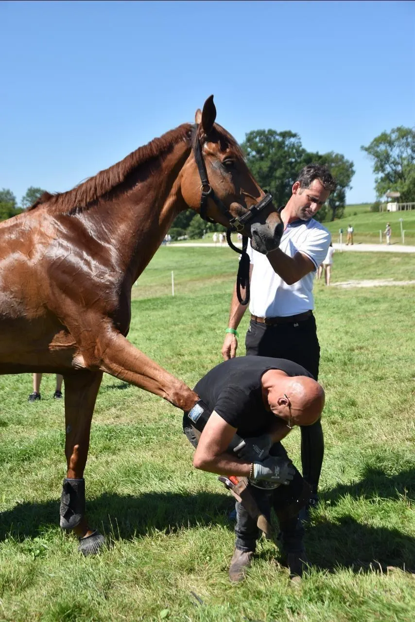 Le maréchal-ferrant James Etiemble dépanne un cavalier en remettant un fer à son cheval. Ouest-France