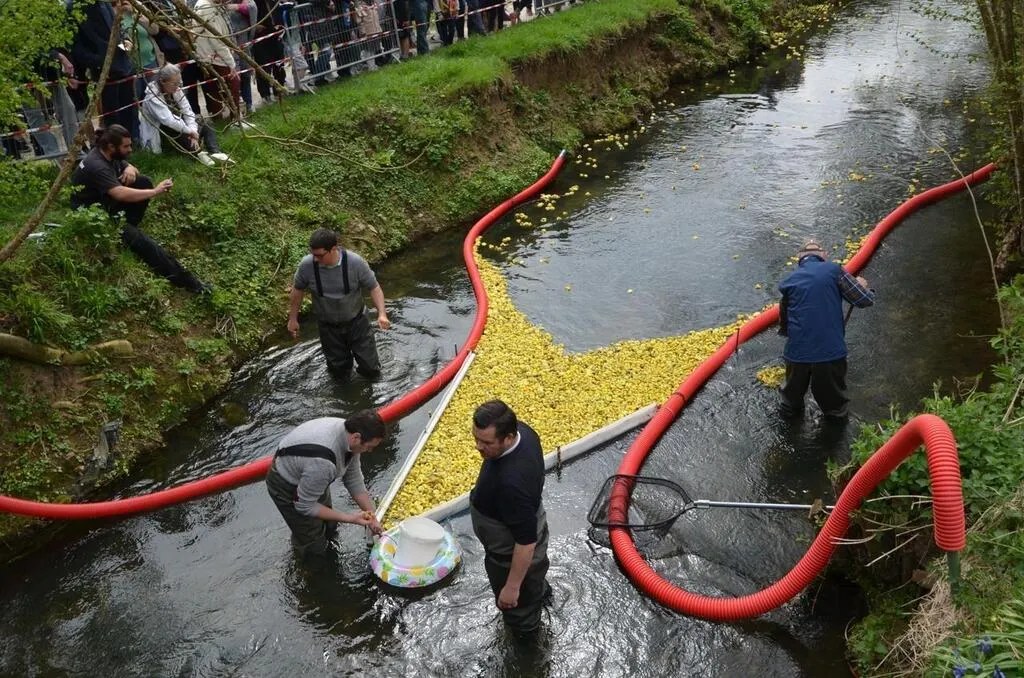 Samedi 12 avril 2025, une course de canards jaunes en plastique a été organisée afin de soutenir les associations locales de L’Aigle (Orne) et de ses environs. En effet, pour chaque canard acheté à 3 €, 2,50 € sont reversés aux vingt associations participantes.