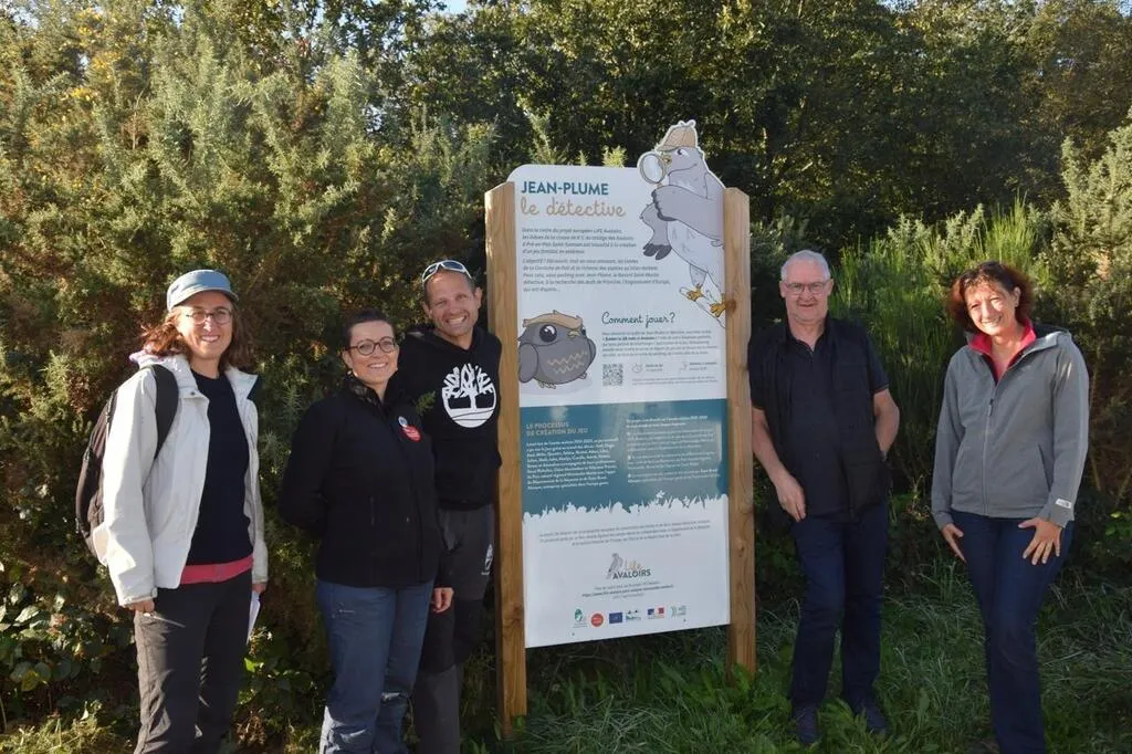 Benjamin Beaufils coordinateur du projet Life Avaloirs, Sandrine Foret technicienne ENS au Département de la Mayenne, Alain Blottière maire de Villepail, ont présenter les travaux réaliser sur la corniche de pail avec les financement du projet Life aux représentes de la commission européeenne. © Ouest-France
