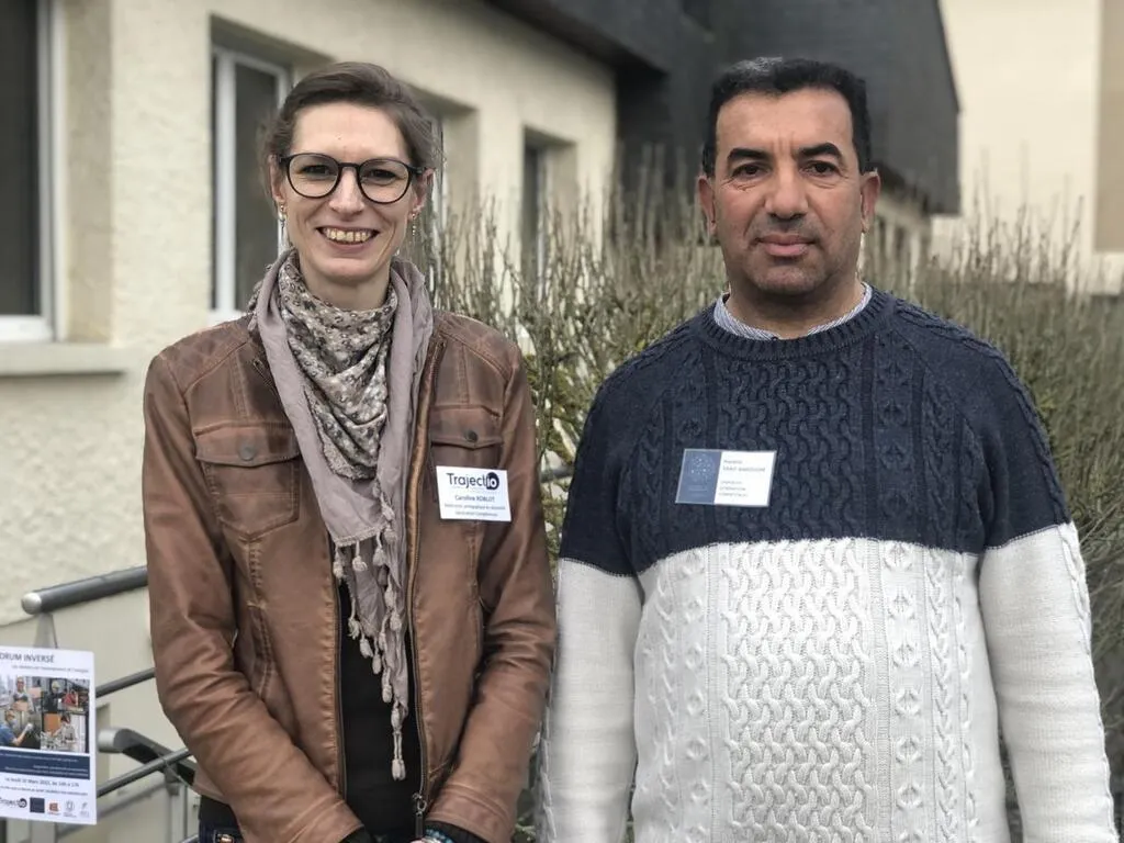 Caroline Roblot, responsable pédagogique à Trajectio, et Hacène Saad-Nakouche, demandeur d’emploi. © Ouest-France