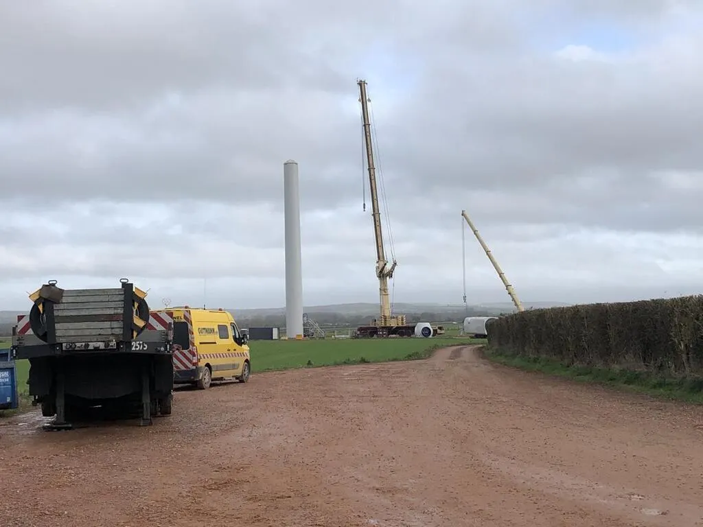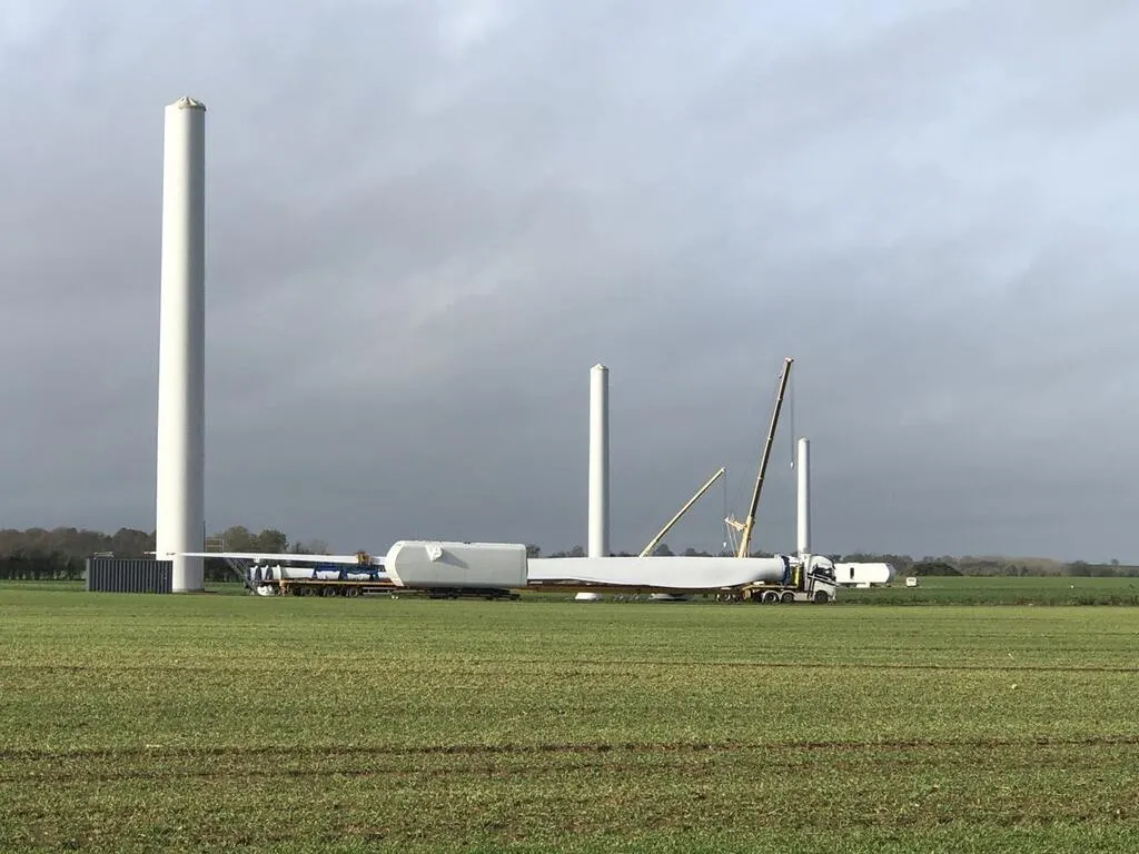 Quatre éoliennes sont en cours d’assemblage à Moulins-sur-Orne. © Ouest-France