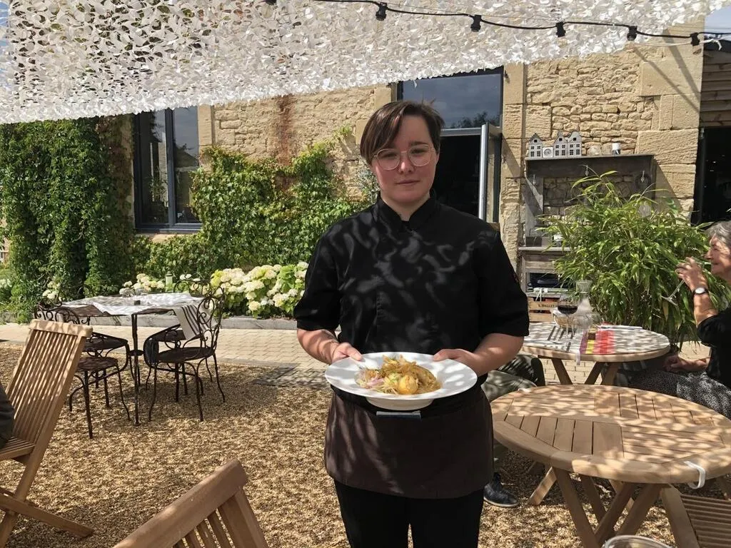 Le partenariat entre Le Comptoir de l’école et l’Esat de Falaise naît après une expérience malheureuse avec un jeune apprenti en situation de handicap venu se former au restaurant. « Ça ne s’est pas bien passé, le jeune a décidé d’arrêter sa formation. Cet échec nous a boostés, on a voulu faire mieux la fois suivante », raconte Athy Poulin. L’équipe du restaurant décide de se faire accompagner par la Maison familiale rurale de Mauvaisville qui les met en contact avec l’établissement de Falaise. « Nous pouvons les appeler dès qu’on a la moindre question », explique le restaurateur. Fin mai 2024, les quatre travailleurs de l’Esat commencent à œuvrer dans les cuisines et la salle du Comptoir de l’école, une fois par semaine. Tous sont en reconversion et cherchent à se former à un nouveau métier. « C’est un peu comme un stage découverte car ils ne sont pas rémunérés : en échange de leur temps de travail, ils reçoivent une formation de la part de nos équipes », détaille Athy Poulin.