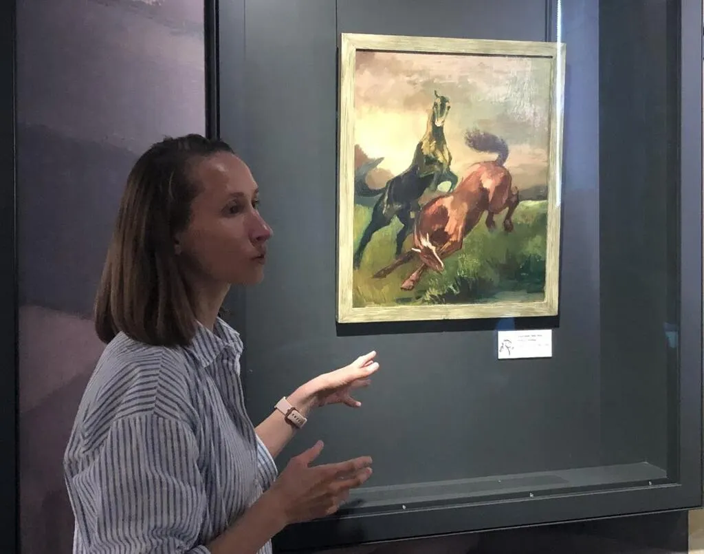 L’exposition « Visions équines » au musée Fernand-Léger-André-Mare, ici commentée par la médiatrice Ophélie Gelu. © Ouest-France