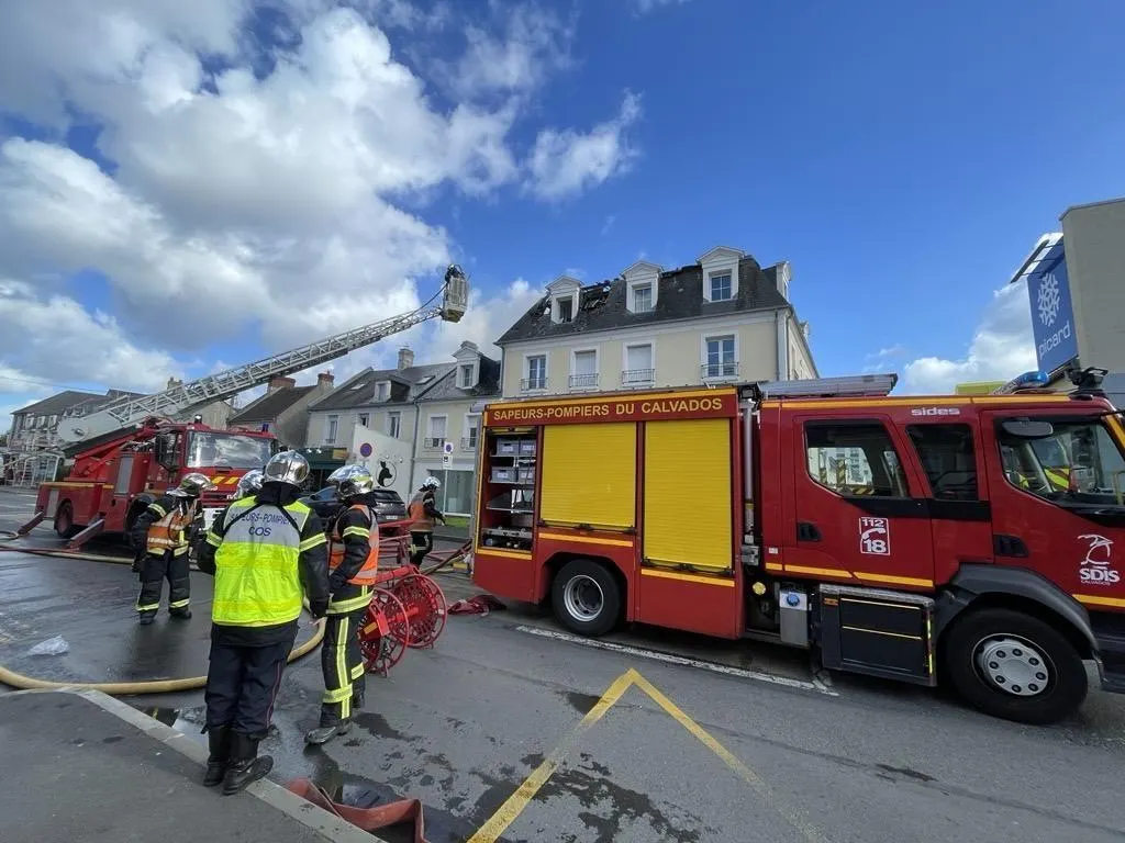 Un incendie s’est déclaré vers 14 h 30, ce mercredi 25 mars 2026, à Caen (Calvados), sur une terrasse en bois surélevée située à l’arrière d’un bâtiment d’habitations abritant également une pâtisserie - salon de thé. Avec les fortes rafales de vent, le feu a rapidement atteint la toiture avant de se propager à celle de l’immeuble voisin. Environ 40 pompiers ont été mobilisés sur ce sinistre. Il a engendré d’importants dégâts. Aucune victime n’est à déplorer.