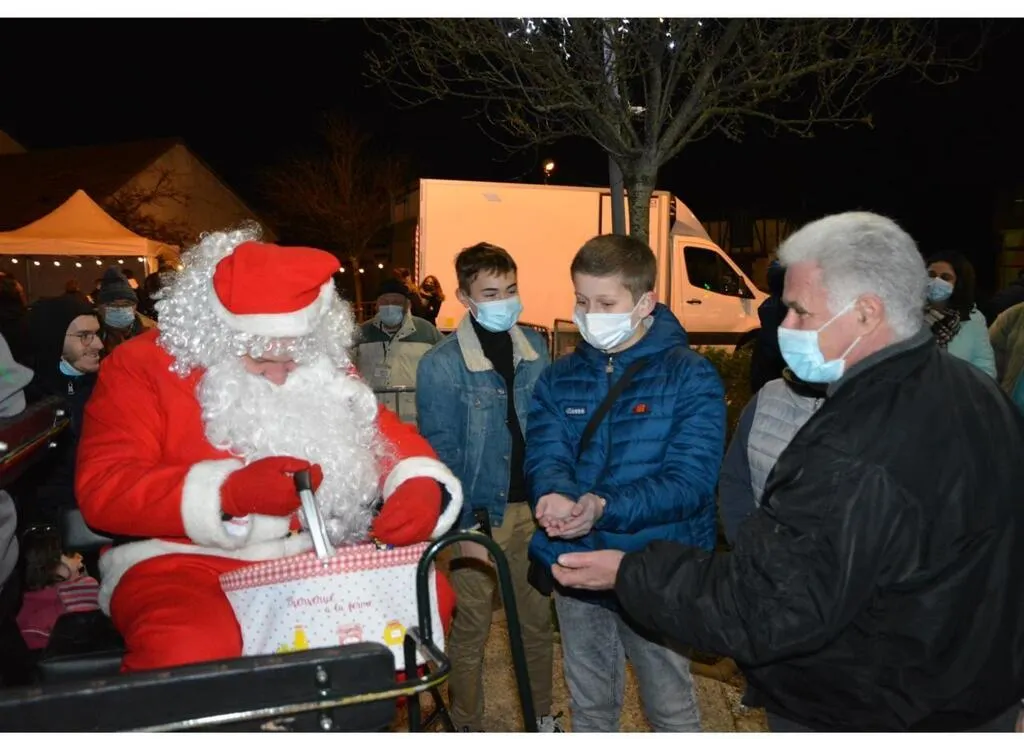 Le marché de Noël, organisé samedi soir par le comité des fêtes, présidé par Eric Lembré, n’était pas celui auquel on était habitué les années précédentes, en raison de la situation sanitaire. Annulé l’an dernier, il a pu être de nouveau organisé samedi soir, en plein air, devant le pôle commercial mais avec des consignes sanitaires strictes : passe sanitaire à l’entrée, gel et port du masque obligatoire et un circuit pour visiter les stands et l’absence remarquée du stand des marrons grillés et de vin chaud afin d’éviter tout attroupement.