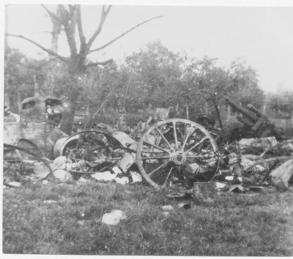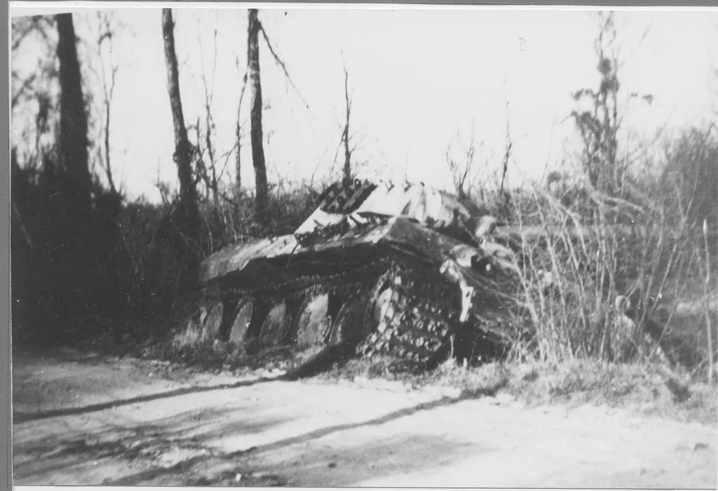 Un important nombre de blindés allemands ont été détruits entre Saint-Lambert-sur-Dive et Chambois. © Collection Pierre Billaux