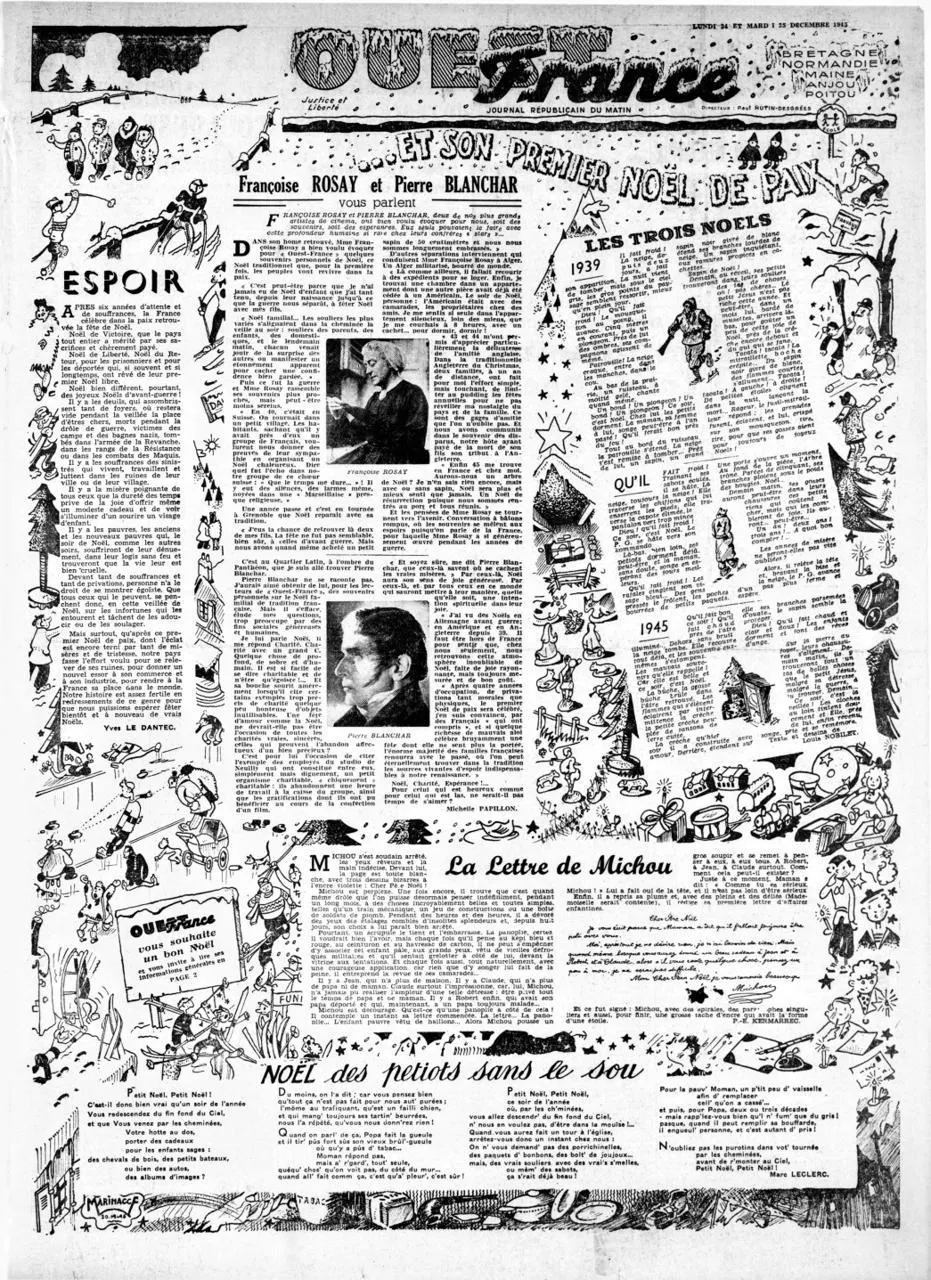 Décembre 1945. L’Europe s’apprête à célébrer son premier Noël en temps de paix. La Normandie est encore marquée par le Débarquement et les combats ravageurs qui ont suivi. Plongée dans les archives de Ouest-France, 80 ans plus tard, et retour sur ce Noël qui, pour la première fois « n’est plus hanté par la menace d’une mort brutale, par l’appréhension d’un hurlement de sirènes ».