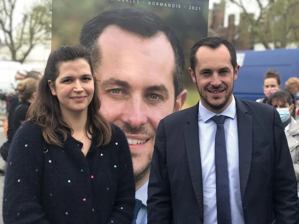 Claire-Emmanuelle Gauer, tête de liste du Rassemblement national dans l’Orne, et Nicolas Bay. © Ouest-France