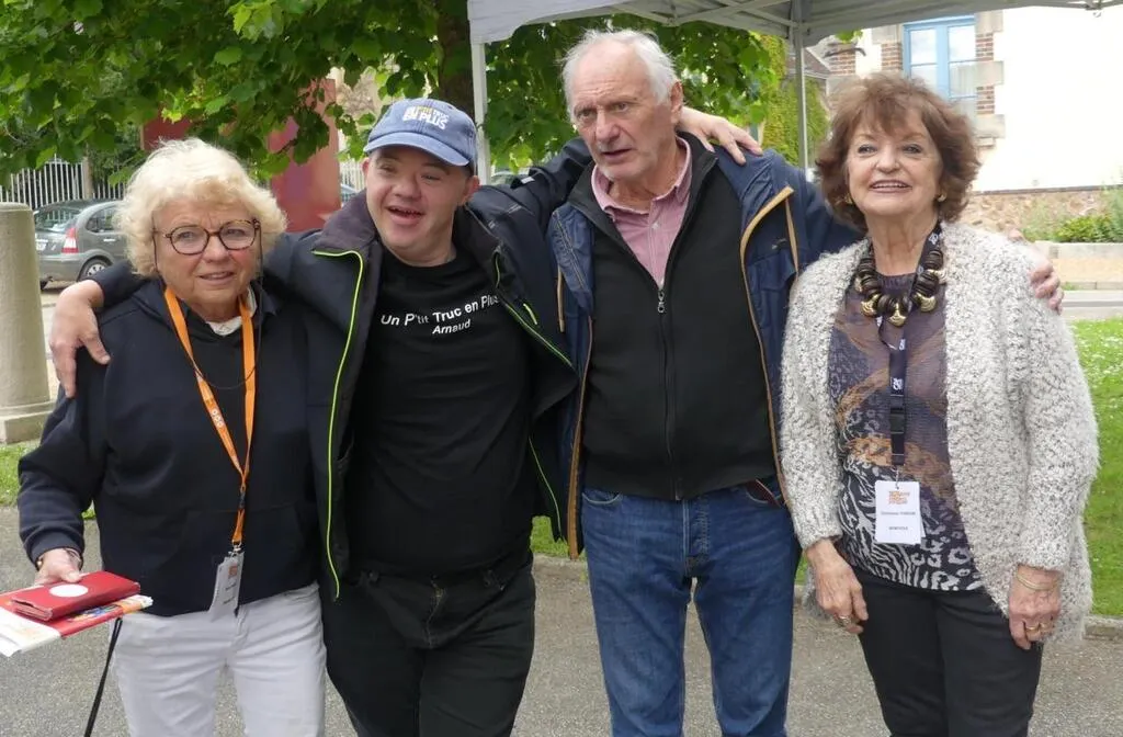 Arnaud Toupense avec Anne Revel-Bertrand, la présidente et des bénévoles du festival Jeunesse tout courts. © Ouest-France