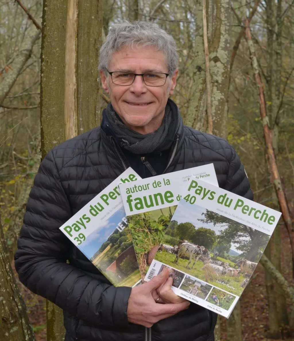 Emmanuel Berck, nouveau rédacteur en chef du Pays du Perche, avec les trois numéros parus en 2023. © Jugoslav Spiroski