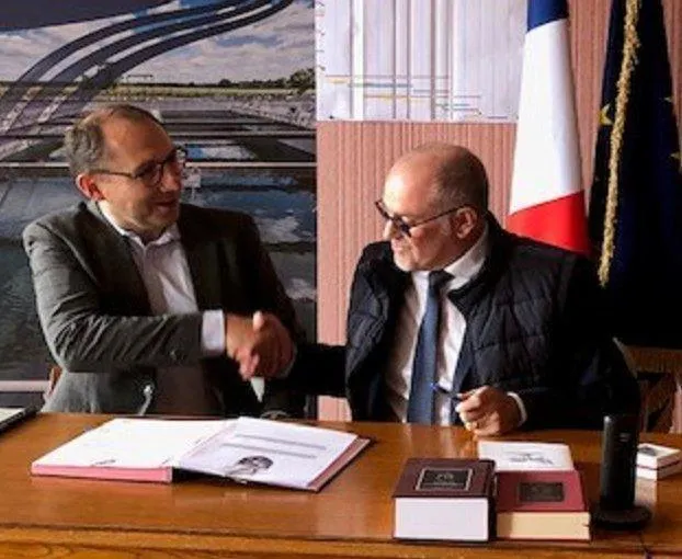 Patrick Rodhain a signé le contrat avec le représentant d’Eaux de Normandie. © Ouest-France