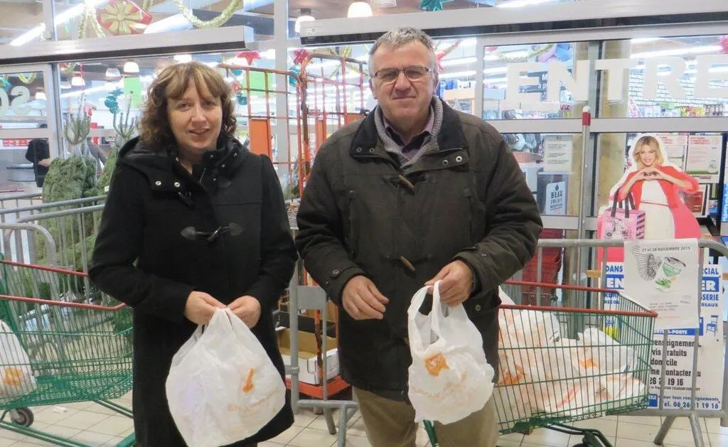 Les bénévoles proposent des sacs aux personnes qui viennent faire leurs courses et récupèrent la marchandise à la sortie. Dans le bourg, Vival et l’Essentiel sont partenaires, de même l’épicerie Denis à Nocé et Coccimarket à Bretoncelles.