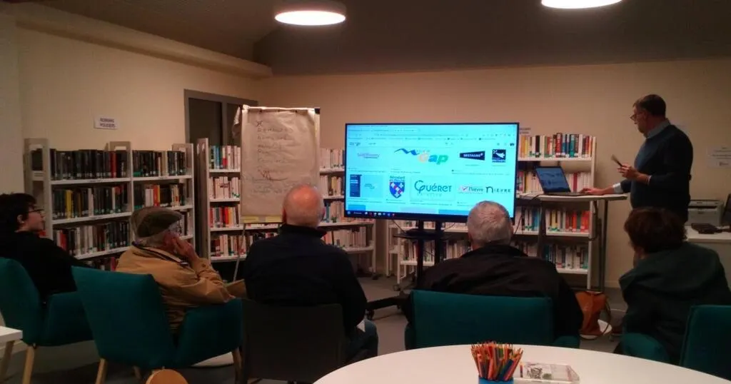 Fabrice Picandet a montré des exemples pour aider les participants à imaginer le futur logo de la commune. © Ouest-France