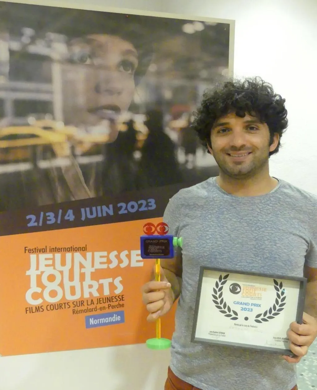Ramazan Kikiç, lauréat du Grand prix 2023 avec son film Une histoire non vécue avait fait le déplacement d’Istanbul pour le recevoir. Thierry Liger lui a remis son trophée ainsi qu’une prime de 600 € offerte par son entreprise Power system. Le cinéaste d’origine kurde a expliqué comment une photographie de Reza l’a inspiré pour raconter les aléas des habitants des campagnes pour accéder aux programmes de télévision dans leur langue.