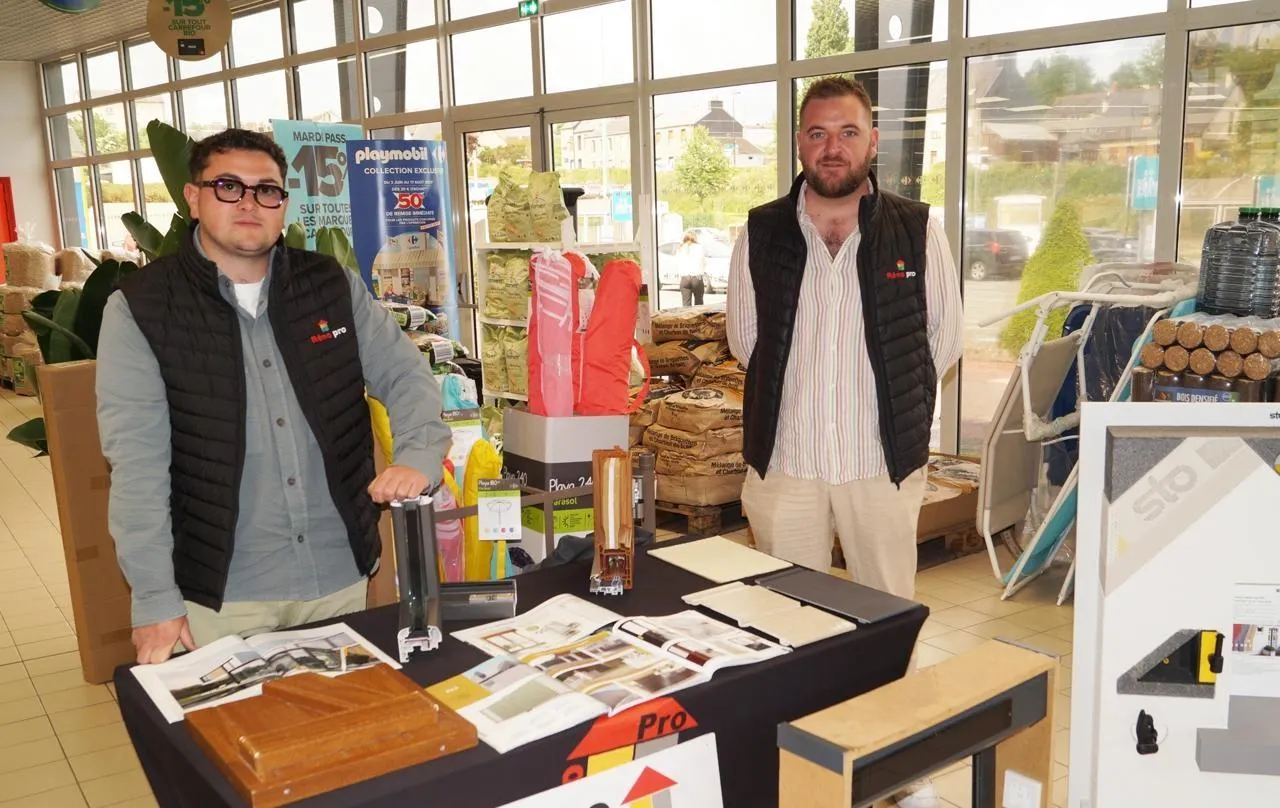 Thibault Dubois responsable des équipes de poses et Vincent Marchand tenaient un stand dans le hall du magasin Carrefour de Tinchebray-Bocage. © Ouest-France