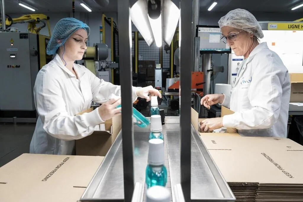 Sur l’une des chaînes de production de l’entreprise Roval cosmétiques à Flers (Orne). © Martin Roche, Ouest-France